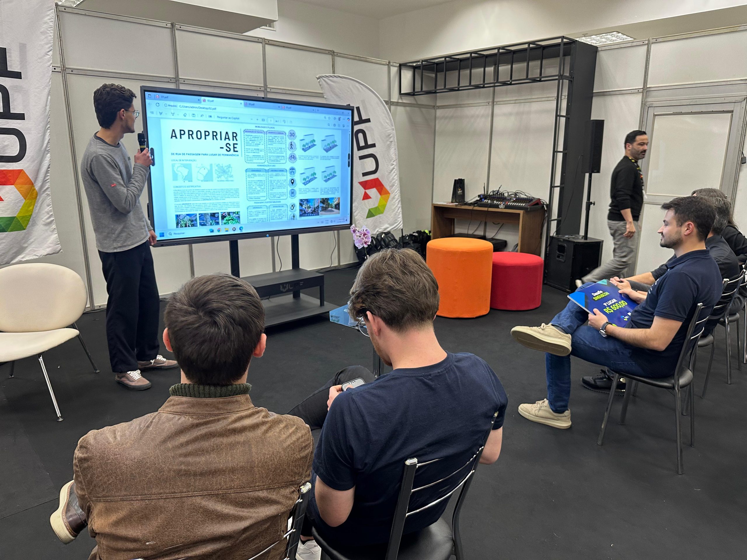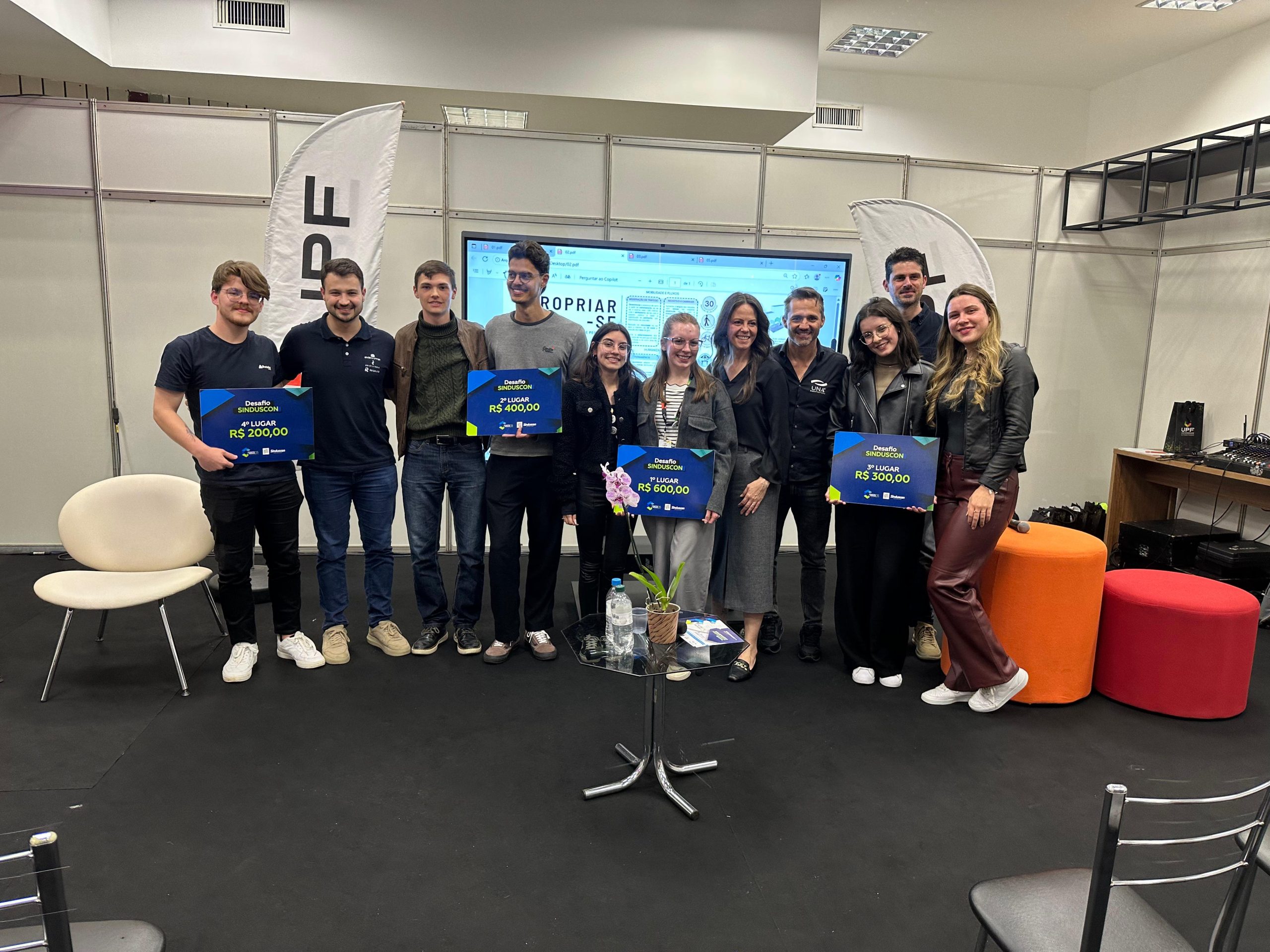Na noite de sexta, estudantes do curso de arquitetura e engenharia civil da UPF foram premiados com prêmios em dinheiro, oferecido pelo Sinduscon, numa parceria com a Universidade de Passo Fundo. Os melhores projetos do desafio lançado na segunda-feira desta semana, trouxeram soluções para o melhoramento da rua Morom, charmosa via da cidade de Passo Fundo.