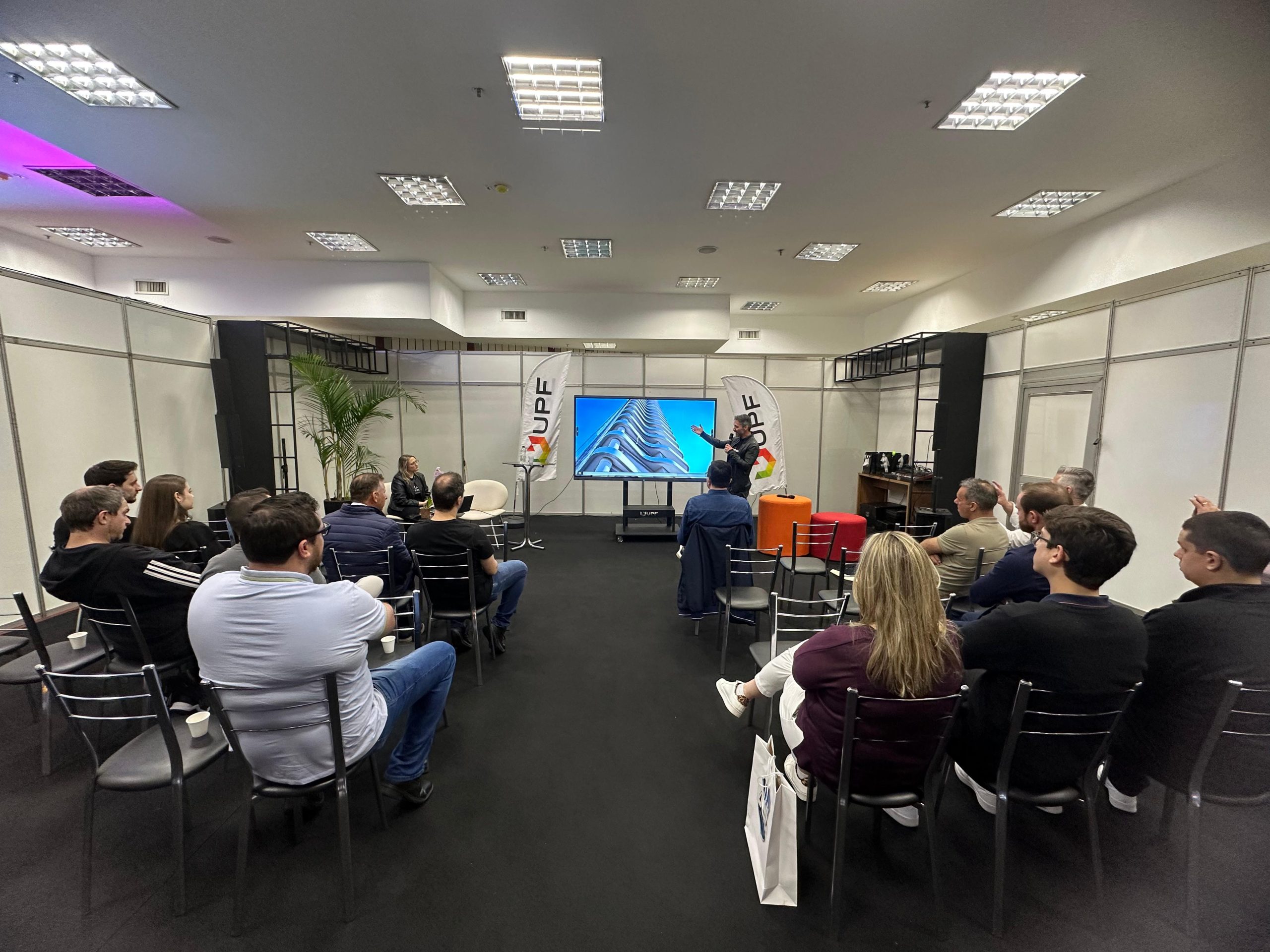 O dia iniciou com a palestra “Construção de prédios altos”, conduzida pelo presidente do SINDUSCON Passo Fundo e Região, Cristiano Basso, que destacou aspectos técnicos e estruturais desse tipo de empreendimento, além de ressaltar a importância da inovação e da segurança em projetos verticais de grande porte.