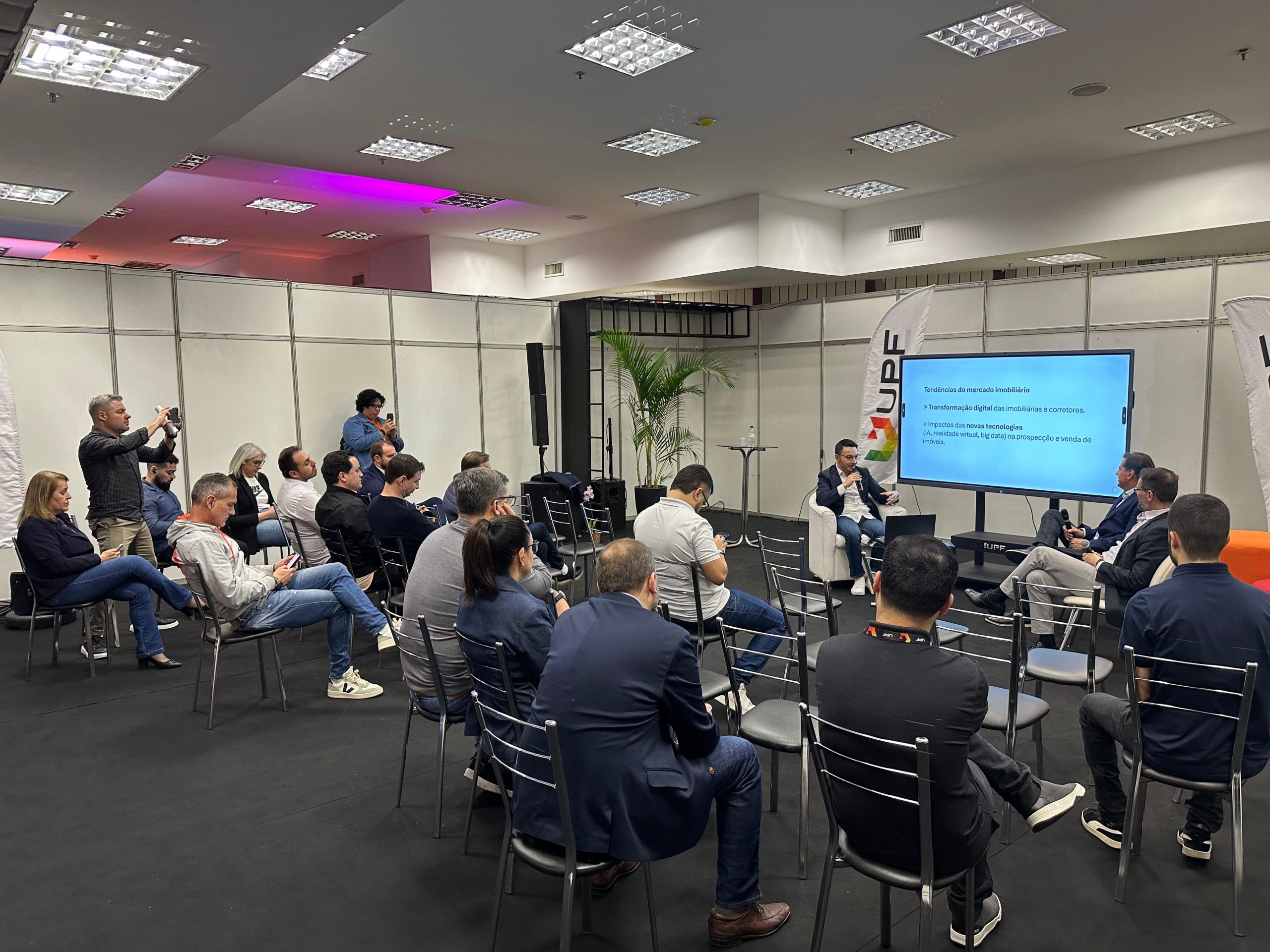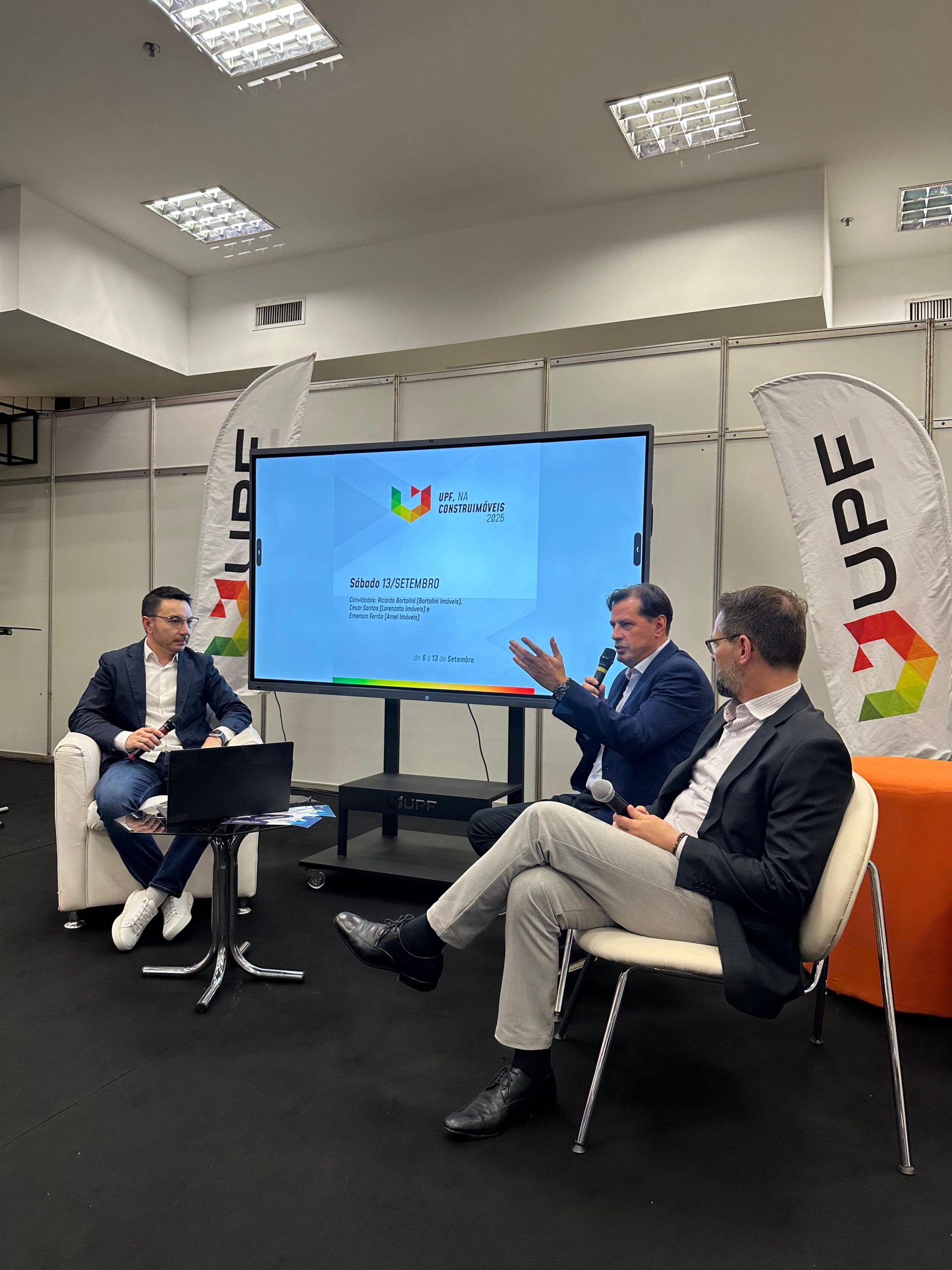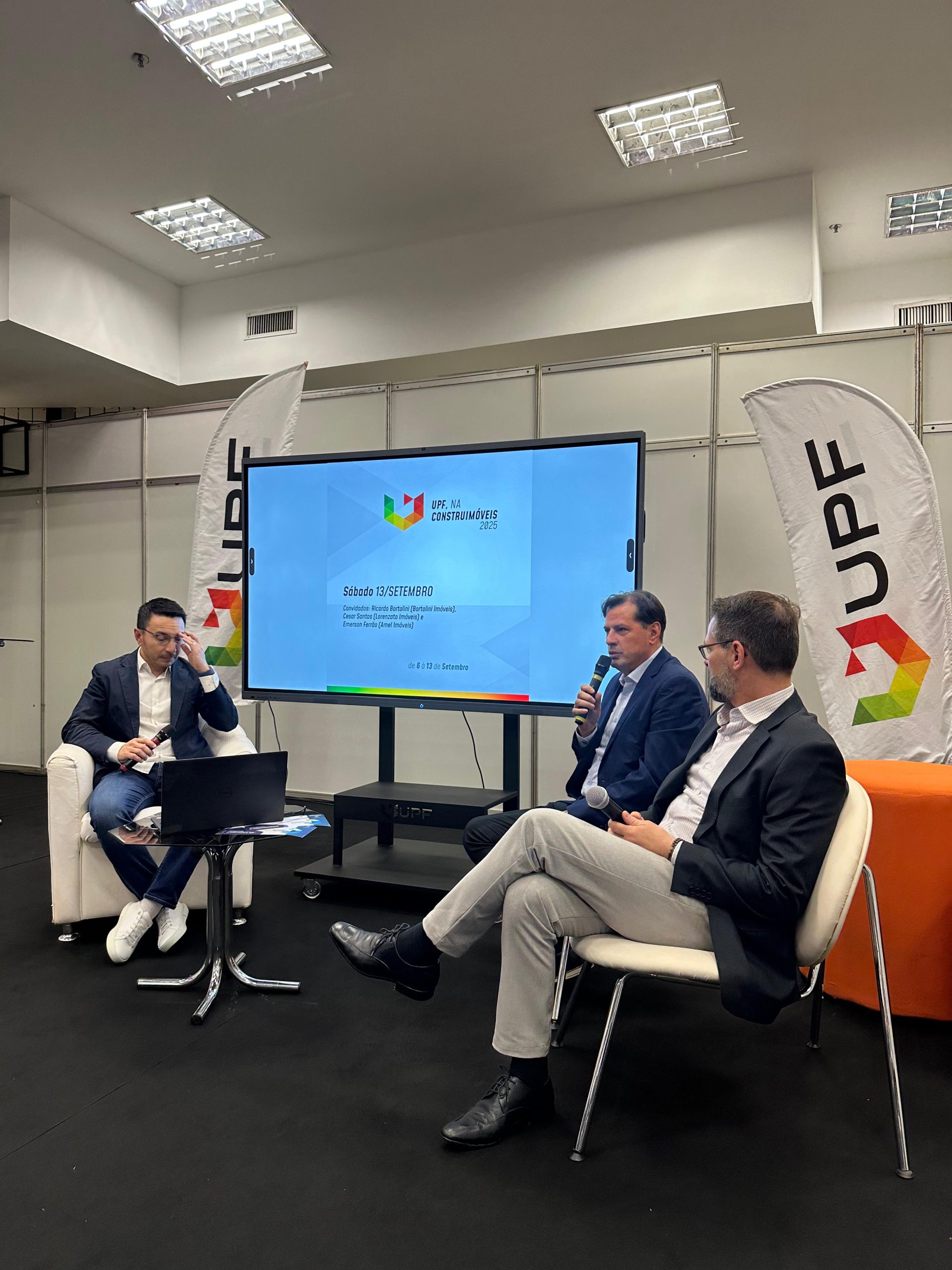 Encerrando a programação do sábado, ocorreu a palestra “O profissional do segmento imobiliário”, com a participação de Ricardo Bortolini (Bortolini Imóveis), Cesar Santos (Lorenzato Imóveis) e Emerson Ferrão (Arnel Imóveis). O debate trouxe reflexões sobre as novas exigências do mercado, a valorização da profissão e as transformações no relacionamento com os clientes.