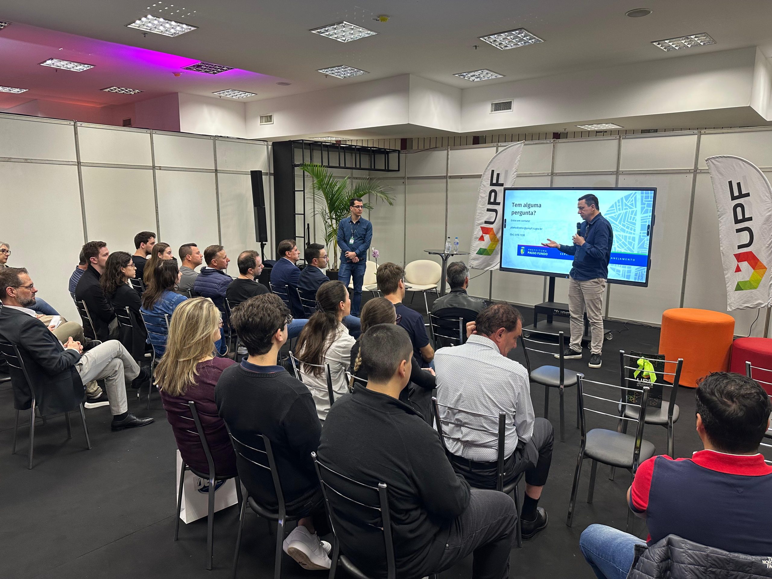 Na sequência, o tema em pauta foi “Plano Diretor e georreferenciamento”, apresentado pelo secretário de Planejamento de Passo Fundo (SEPLAN), Giezi Schneider. Ele abordou como o planejamento urbano e o uso de ferramentas modernas de georreferenciamento contribuem para uma cidade mais organizada, sustentável e preparada para o crescimento.